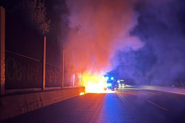 Beim Eintreffen der Einsatzkräfte bestätigte sich die Lage. Ein Pkw mit zwei Insassen hatte zuvor eine Rauchentwicklung festgestellt und das Fahrzeug daraufhin auf dem Standstreifen abgestellt. In der Folge geriet der Pkw in Vollbrand.