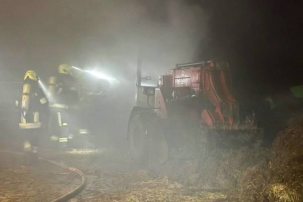 Gegen 18 Uhr bemerkte der Landwirt den brennenden Radlader und verständigte die Feuerwehr. Die Flammen schlugen aus dem hinteren Bereich des Fahrzeuges, nur knapp neben Heu, Stroh und den im Stall untergebrachten Tieren.