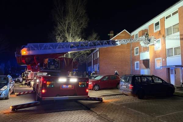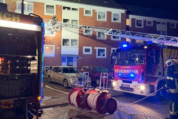 Noch gerade rechtzeitig sind Bewohner eines Mehrfamilienhauses in der Thüringer Straße am Montagabend aus ihrer Obergeschosswohnung gelangt, in der zuvor ein Feuer im Bereich der Küche ausgebrochen war. Nachdem sie in der Folge einen Notruf abgesetzt hatten, wurde die Feuerwehr Aurich gegen 18:45 Uhr zu der gemeldeten Adresse alarmiert. Atemschutzgeräteträger gingen umgehend in die stark verrauchten Räumlichkeiten vor. Parallel ist die Drehleiter vor dem bereits geräumten Gebäude in Stellung gebracht worden.