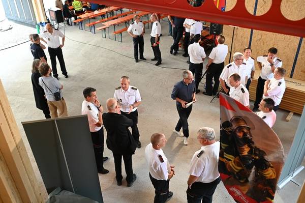 Amtsleiter und Feuerwehrkommandant, Dr. Georg Belge, unterstrich in seiner Ansprache an die geladenen Gäste die Bedeutung des Interimsstandorts und den dadurch möglichen Neubau der Feuerwache 1: "Wir bedanken uns bei allen Beteiligten, welche dieses Bauprojekt ermöglicht haben. Ich bin sehr froh, dass für das Interimsgebäude in der dicht bebauten Innenstadt ein Platz gefunden werden konnte. Denn die Interims-Feuerwache 1 ist elementar wichtig, um auch während des Neubaus der Feuerwache 1 an der Katharinenstraße den Schutz der Bürgerinnen und Bürger im südlichen Innenstadtbereich sicherstellen zu können.