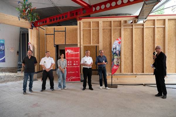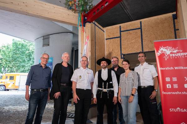 Nach intensiver Planung zwischen den beteiligten Ämtern und Unternehmen, konnte mit der baulichen Umsetzung des Projekts Ende 2024 begonnen werden. Mit der Fertigstellung des Rohbaus hat die Baumaßnahme im Juli 2025 nun ihren ersten großen Meilenstein erreicht. Zu diesem Anlass fand im Beisein von Vertreterinnen und Vertretern der am Bau beteiligten Ämter, Planer und Handwerker am 16. Juli 2025 das Richtfest als Fest der Handwerker für die Interims-Feuerwache 1 statt.