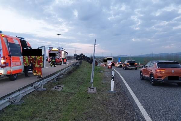 A 71 Höhe Dornheim (ots) - Am Donnerstag, den 16.04.2026, durchbrach gegen 04:30 Uhr ein Sattelzug auf der Bundesautobahn 71 in Fahrtrichtung Schweinfurt, an der Anschlussstelle Arnstadt-Nord, die Schutzleitplanke des Standstreifens und kam auf der Beifahrerseite zum Liegen. Nach aktuellem Ermittlungsstand ist die Unfallursache, für das Abkommen des Sattelzuges von der Fahrbahn nach rechts, ungeklärt.