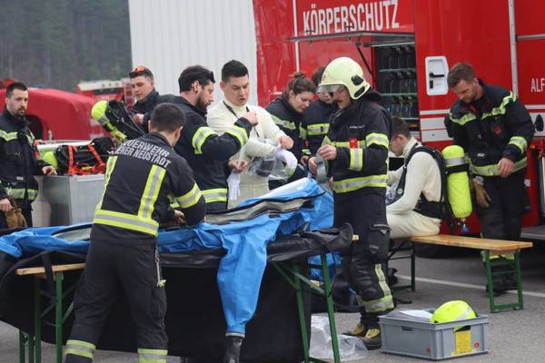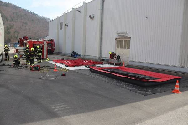 Die sofort alarmierte Betriebsfeuerwehr des Unternehmens führte erste Maßnahmen durch und konnte die Gefahr einer unkontrollierten Ausbreitung innerhalb kürzester Zeit bannen. Gleichzeitig wurde im Feuerwehrabschnitt Gutenstein Abschnittsalarm ausgelöst und die Schadstoffzüge Wiener Neustadt und Aspang inklusive Dekontaminationseinheit alarmiert.
