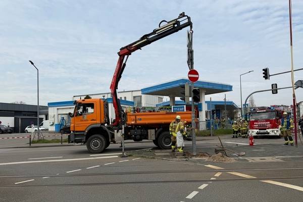 Weinheim (ots) - Die Feuerwehr Weinheim wurde am Dienstag, 24. März, gegen 11:30 Uhr zu einer Gefahrenstelle an der Kreuzung Stahlbadstraße und Cavaillonstraße alarmiert. Dort war ein Ampelmast in deutliche Schieflage geraten.