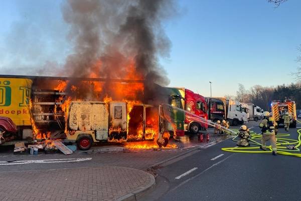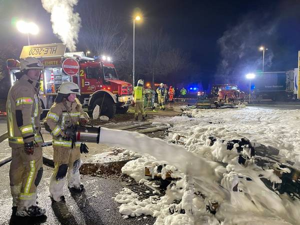 Bereits auf der Anfahrt der Einsatzkräfte konnte eine deutliche Rauchsäule wahrgenommen werden. Bei Eintreffen der Einsatzkräfte stand der Transporter bereits in Vollbrand. Zwei direkt daneben abgestellte Sattelzüge waren ebenfalls betroffen; auf den direkt neben dem brennenden Transporter befindlichen Sattelzug, er war mit Papier beladen, hatte das Feuer bereits komplett übergegriffen. Das Feuer drohte nun auf den dritten Sattelzug überzugreifen. Umgehend wurde daraufhin die Alarmstufe auf "Ba2" erhöht und zusätzlich die Feuerwehren Ahlten, Aligse, Steinwedel und Immensen alarmiert. Umgehend wurde die Brandbekämpfung eingeleitet. Hierfür wurde durch einen Trupp das Feuer am Transporter bekämpft, ein weiterer bekämpfte den in vollbrand befindlichen Sattelauflieger des Sattelzuges und ein dritter Trupp nahm eine Riegelstellung vor um den dritten LKW vor den Flammen zu schützen. Aufgrund der winterlichen Temperaturen und eingefrorener Wasserstellen war die Löschwasserversorgung über den daneben gelagerten Hohnhorstweg eine besondere Herausforderung. Der Unterflurhydrant war zu gefroren, Wasser auf dem Boden gefrierte sofort und wurde zu einer Eisfläche. Der Transporter und der direkt daneben befindliche Sattelauflieger inklusive Zugmaschine wurde teils komplett zerstört oder erlitt durch das Feuer hohen Schaden. Durch das schnelle Eingreifen konnte jedoch verhindert werden das der dritte Sattelzug ebenfalls den Flammen zum Opfer fiel.