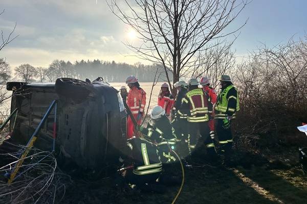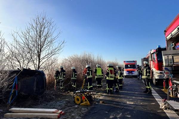 Da das Fahrzeug auf der Fahrerseite lag, konnte die Insassin es nicht selbstständig verlassen. Zudem war sie zwischen den Sitzen eingeklemmt.