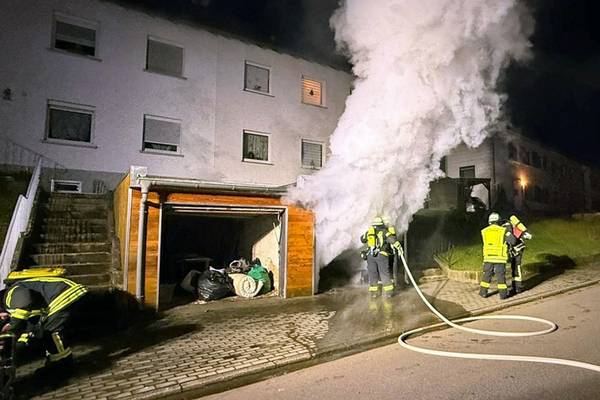 Neunkirchen (ots) - Eine regelrechte Brandserie hielt die Freiwillige Feuerwehr Neunkirchen die ganze Nacht zum Samstag, 17. Januar hindurch auf Trab. Ab 1:45 Uhr musste die Neunkircher Wehr an verschiedenen Orten in der Innenstadt und im Stadtteil Wellesweiler insgesamt sechs Brände bekämpfen. Das gravierendste Feuer wütete in einer Garage in der Albert-Schweitzer-Straße. Aus dem angrenzenden Wohnhaus mussten die Feuerwehrleute sieben Bewohner vor giftigem Brandrauch in Sicherheit bringen. Zum ersten Mal wurde die Feuerwehr Neunkirchen in der Nacht zum Samstag um 1:45 Uhr zum Einsatz gerufen. Die Angehörigen des Löschbezirks Wellesweiler mussten in der Eisenbahnstraße in der Ortsmitte eine in Brand geratene Mülltonne ablöschen. Nach einer knappen halben Stunde hatten die Feuerwehrleute den Routineeinsatz abgearbeitet und konnten wieder einrücken. Zwei Stunden nach dem ersten Einsatz wurde gegen 3:45 Uhr zum zweiten Mal für die Nacht Alarm für die Neunkircher Wehr ausgelöst. Dieser Alarm galt dem Löschbezirk Neunkirchen-Innenstadt. In der Albert-Schweitzer-Straße hatten Anwohner über den Notruf ein Feuer in einer Garage gemeldet. Ein Auto stand zum Glück nicht in der Garage, dafür brannten aber zahlreiche in ihr eingelagerte Gegenstände unter einer starken Rauchentwicklung. Der Brandrauch stieg nicht nur in den dunklen Nachthimmel auf, sondern suchte sich durch eine Rohrverbindung auch seinen Weg in das angrenzende Wohnhaus.