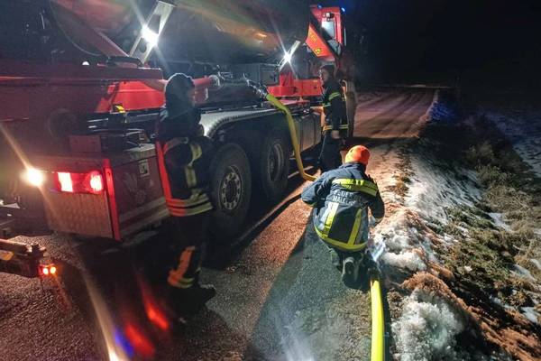 Die Versorgung erfolgt daher mittels Tanklöschfahrzeugen im Pendelverkehr. Aufgrund des erhöhten nächtlichen Wasserverbrauchs war es gestern Nacht notwendig, weitere Feuerwehren zu alarmieren. Derzeit sind Feuerwehr-Fahrzeuge mit einer Gesamtkapazität von 47.000 Litern Wasser kontinuierlich im Einsatz. Bislang wurden etwa eine halbe Million Liter Wasser transportiert