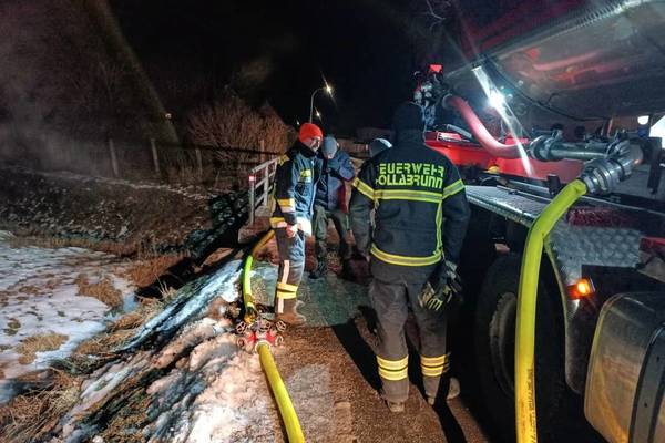 Die Temperaturen von bis zu minus sieben Grad stellen eine Herausforderung für Mensch und Material dar. Zur teilweisen Ablöse werden heute Abend die Feuerwehren Sitzendorf und Stockerau nachalarmiert.