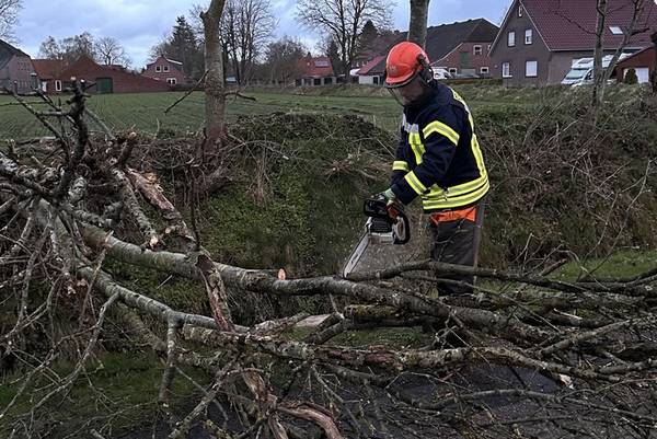 Aurich-Wiesens (ots) - Die in der Nacht aufgetretenen und zum Teil kräftigen Windböen machten sich am Mittwochmorgen auf dem Moorackerweg in Wiesens bemerkbar. Ein Baum war dort auf die Fahrbahn gestürzt und blockierte diese in Gänze. Zur Beseitigung des Sturmschadens rückte die Feuerwehr Wiesens an. Nachdem der Arbeitsbereich abgesichert worden war, konnte der Baum unter Zuhilfenahme einer Kettensäge innerhalb von Minuten zerteilt und Stück für Stück von der Straße geräumt werden, die im Anschluss noch von übriggebliebenen Verschmutzungen befreit wurde.