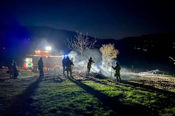 Weinheim-Steinklingen. Die Feuerwehr Weinheim Abteilung Oberflockenbach löschte am Freitagabend gegen 21:15 Uhr, ein unbeaufsichtigtes Nutzfeuer im Finkenweg. Die Polizei stellte das Feuer fest und forderte die Feuerwehrabteilung nach.