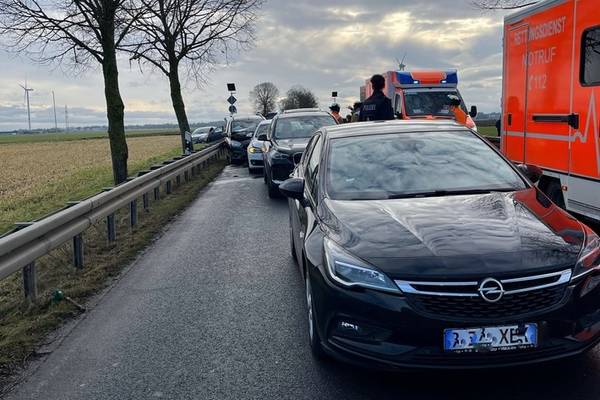 Mehrere Fahrzeuge wurden abgeschleppt. Die eingesetzten Polizeibeamten sperrten die B57 in dem betroffenen Bereich in beide Fahrtrichtungen bis ca. 16:30 Uhr.