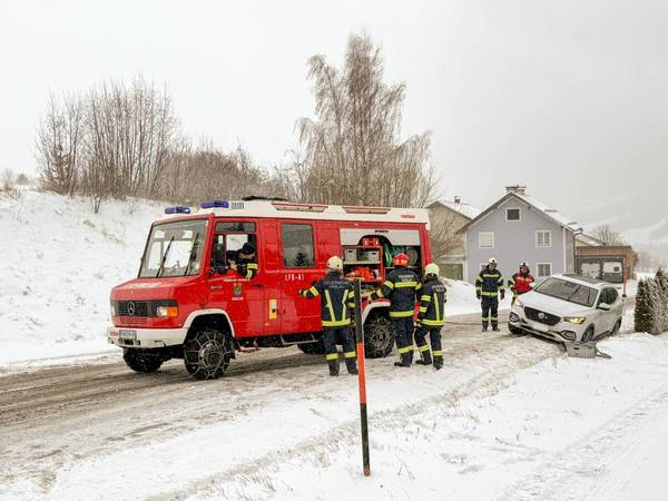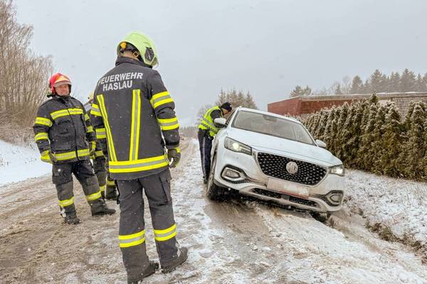 Ein LKW war auf der L1281 Vöcklatalstraße aufgrund der tiefwinterlichen Fahrverhältnisse hängen geblieben. Der nachkommende PKW-Fahrer wollte am hängenden LKW vorbeifahren und rutschte dabei in den abgrenzenden Graben. Vater und Kind waren unverletzt. Der PKW wurde von der Feuerwehr Haslau wieder auf die Straße gezogen und konnte die Fahrt fortsetzen. Der LKW musste von der Feuerwehr Zell am Moos über die Steigung geschleppt werden.