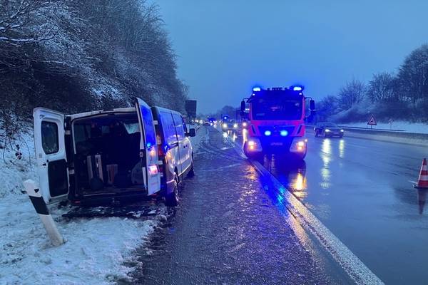 Am heutigen Morgen kam es auf der Bundesautobahn A1 bei Remscheid zu einem Verkehrsunfall mit Personenschaden. Um 07:56 Uhr wurde die Feuerwehr zu einem überschlagenen PKW in Fahrtrichtung Köln, kurz vor der Autobahnabfahrt Lennep, gerufen. Der PKW, ein weißer Kleinbus, war aus bisher ungeklärter Ursache von der Fahrbahn abgekommen und lag beim Eintreffen der Einsatzkräfte im Grünen neben dem rechten Standstreifen. Die sieben Insassen, die sich auf dem Weg zur Arbeit befanden, konnten ihr Fahrzeug glücklicherweise bereits vor dem Eintreffen der ersten Einsatzkräfte selbstständig verlassen. Alle Sieben wurden noch vor Ort durch den Rettungsdienst behandelt und darauffolgend mit leichten Verletzungen in die umliegenden Krankenhäuser nach Remscheid und Wuppertal transportiert.