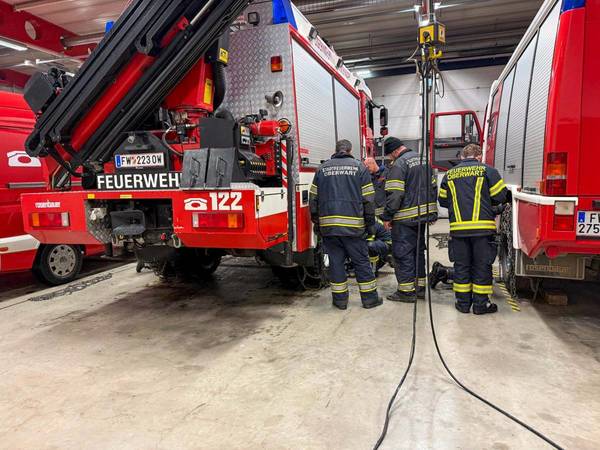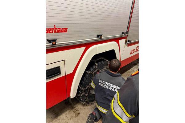 Nach der Rückkehr ins Feuerwehrhaus bereitete sich die Mannschaft auf die angekündigten Schneefälle in der Nacht vor und legte vorsorglich Schneeketten an den Einsatzfahrzeugen an.