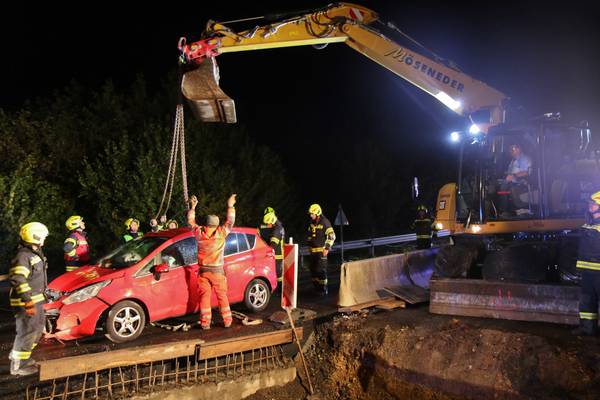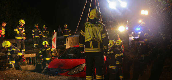 Eine übersehene Baustellenabsperrung war der Grund für den Verkehrsunfall, zu dem die Feuerwehren Pimpfing und Andorf am Abend des 14. Oktober 2021 gerufen wurden. Ein aus Richtung Zell an der Pram kommender Autolenker übersah auf der B137 eine Baustellenabsperrung, welche im Zuge einer Brückensanierung errichtet worden war. Trotz geringer Geschwindigkeit konnte der Lenker sein Fahrzeug nicht mehr rechtzeitig zum Stillstand bringen und schlitterte auf der regennassen Fahrbahn in eine Baugrube. Die beiden von der oberösterreichischen Landeswarnzentrale alarmierten Feuerwehren begannen nach dem Eintreffen an der Einsatzstelle damit die Straße komplett zu sperren. Da sich das Fahrzeug mehr als einen Meter unter der Fahrbahn befand musste dieses schließlich mithilfe eines Baggers aus der Grube gehoben werden. Während des gesamten Einsatzes wurde der Verkehr großräumig über Andorf umgeleitet. Nach ca. 1,5 Stunden konnte die Feuerwehr Pimpfing wieder ins Feuerwehrhaus einrücken und schließlich den Einsatz beenden.