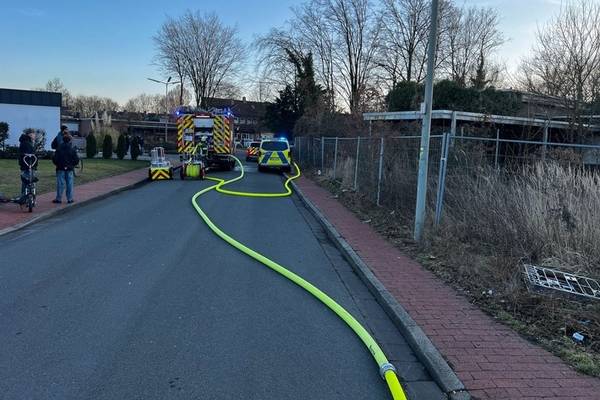 Am Sonntagnachmittag wurden die Leitung der Feuerwehr und der Löschzug Mitte um 16:11 Uhr mit dem Alarmstichwort "F3 Gebäude. - Flammen und Rauchentwicklung aus Gebäude" in die Straße Thünen in Werne - Mitte alarmiert.