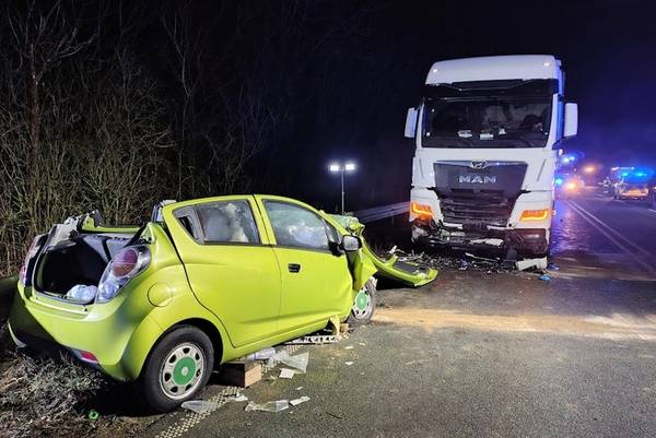 Die Feuerwehr Gangelt wurde heute Morgen um 5:38 Uhr zusammen mit der Feuerwehr Selfkant, dem Rettungsdienst im Kreis Heinsberg (RDHS) und der Polizei zu einem schweren Verkehrsunfall auf der Bundesstraße 56 n alarmiert. Gegen 5:30 Uhr befuhr ein Fahrer mit seinem Chevrolet Sparks mit belgischem Kennzeichen die Bundesstraße 56 n aus Richtung Heinsberg kommend in Fahrtrichtung Niederlande. Aus bislang ungeklärter Ursache geriet das Fahrzeug auf die Gegenfahrbahn und stieß dort frontal mit einem Lkw zusammen. Durch die Wucht des Aufpralls wurde der Fahrer lebensgefährlich verletzt in seinem Fahrzeug eingeschlossen. Da zunächst gemeldet wurde, dass der Unfall zwischen den Ortschaften Gangelt und Birgden passiert sei, wurde zunächst die Feuerwehr Gangelt zur Einsatzstelle alarmiert. Der zuerst eintreffende Rettungsdienst korrigierte jedoch die Lage auf das Gebiet der Gemeinde Selfkant, so dass die Einheiten Höngen-Saeffelen und Millen-Tüddern der Feuerwehr Selfkant ebenfalls zur Unterstützung ausrückten. Während der Rettungsdienst den lebensgefährlich verletzten Fahrer versorgte, bereiteten Einsatzkräfte der Feuerwehr die technische Rettung vor. Mit hydraulischem Rettungsgerät wurde das Dach des Pkw entfernt, so dass der Fahrer schonend gerettet werden konnte. Der Fahrer wurde zur weiteren Behandlung mit dem Rettungshubschrauber Christoph Dortmund in ein Krankenhaus der Maximalversorgung transportiert. Der Lkw-Fahrer erlitt bei dem Unfall einen Schock und musste mit leichten Verletzungen in ein Nahe gelegenes Krankenhaus transportiert werden. Durch den Rückstau kam es wenige Meter vor der Unfallstelle zu einem weiteren Verkehrsunfall. Hier stießen zwei Pkw zusammen. Die Fahrer wurden durch den Aufprall leicht verletzt und benötigten ebenfalls medizinische Hilfe. Die Einsatzkräfte der Feuerwehr betreuten die beiden Fahrer bis zum Eintreffen weitere Rettungsmittel. Auch diese beiden Fahrer wurden mit leichten Verletzungen zur weiteren Behandlung in umliegende Krankenhäuser transportiert. Für die Dauer der Rettungs- und Bergungsarbeiten musste die Bundesstraße 56n in beide Richtungen mehrere Stunden lang gesperrt werden.