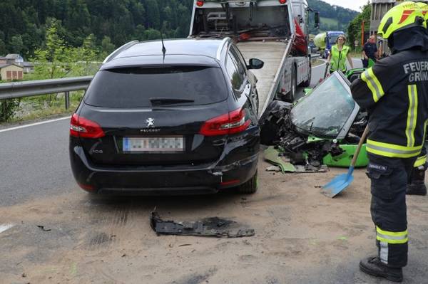 GRÜNBURG. Vier Verletzte forderte Freitagvormittag eine schwere Frontalkollision auf der Steyrtalstraße bei Grünburg (Bezirk Kirchdorf an der Krems). Der Unfall ereignete sich Freitagvormittag auf der Steyrtalstraße im Gemeindegebiet von Grünburg. "Ein 55-Jähriger aus dem Bezirk Kirchdorf an der Krems fuhr mit seinem PKW am 11. Juni 2021 gegen 09:50 Uhr auf der Steyrtalstraße Richtung Grünburg. Im Ortschaftsbereich Obergrünburg überholte der Mann zwei vor ihm fahrende Fahrzeuge. Dabei kam es zu einem Frontalzusammenstoß mit dem entgegenkommenden Wagen eines 67-Jährigen aus dem Bezirk Linz-Land, der mit seinem Bruder und seiner Ehefrau unterwegs war", berichtet die Polizei. Insgesamt wurden bei dem Unfall vier Personen verletzt. Eine schwerverletzte Person wurde nach der notärztlichen Erstversorgung mit dem Notarzthubschrauber Christophorus 10 ins UKH Linz geflogen. Zwei weitere Verletzte wurden in das Pyhrn-Eisenwurzen Klinikum Steyr und eine Person in das Pyhrn-Eisenwurzen Klinikum Kirchdorf eingeliefert. Die Einsatzkräfte der drei alarmierten Feuerwehren sicherten die Unfallstelle ab, ausgelaufene Betriebsmittel wurden gebunden und der Abschleppdienst beziehungsweise ein Transportunternehmen beim Abtransport der Fahrzeuge unterstützt. Eingeklemmt in den Unfallwracks war entgegen erster Meldungen zum Glück jedoch niemand. Die Steyrtalstraße war zwischen Grünburg und Leonstein rund eineinhalb Stunden gesperrt. Der PKW-Verkehr wurde örtlich über Nebenstraßen umgeleitet. LKW mussten die Dauer der Sperre abwarten.