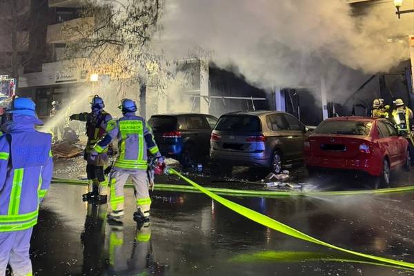 Beim Eintreffen der Einsatzkräfte bestätigten sich die Meldungen. Die Geschäftsräume eines im Erdgeschoss befindlichen Imbisses brannten in voller Ausdehnung. Zu diesem Zeitpunkt befanden sich noch 11 Personen im Gebäude.