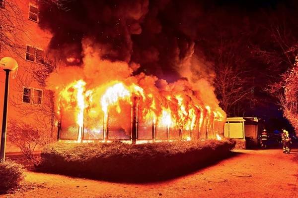 In der Nacht von Freitag auf Samstag wurde die Feuerwehr München zu einem brennenden Mülltonnenhaus alarmiert. Der Sachschaden ist erheblich, verletzt wurde niemand.