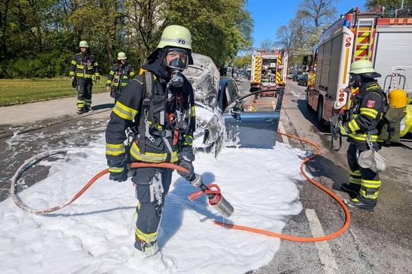 Einsatzkräfte der Feuerwehr München wurden gegen 10.20 Uhr in die Neurieder Straße alarmiert. Am Einsatzort stand ein VW Golf in Flammen. Passanten hatten noch versucht, den Entstehungsbrand zu löschen. Ein Atemschutztrupp bekam die Flammen mit Löschschaum rasch unter Kontrolle. Anschließend wurde der Pkw mit einer Wärmebildkamera auf Glutnester kontrolliert.