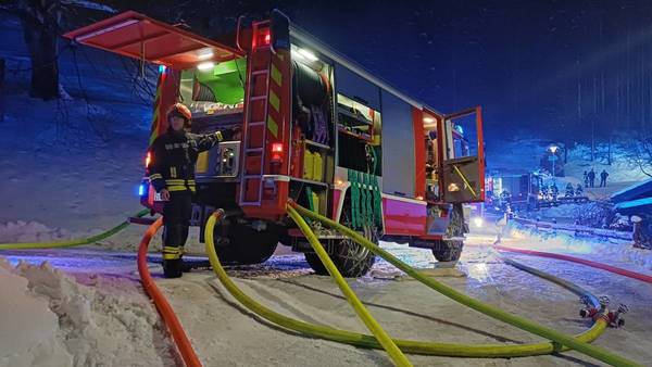 Bereits auf der Anfahrt stand das Einfamilienwohnhaus in Vollbrand; deshalb veranlasste die Einsatzleitung Gröbming um 01:07 Uhr die Nachalarmierung der Feuerwehren Lengdorf und St. Martin, um eine 500 m lange Zubringleitung vom Gröbmingerbach herzustellen.