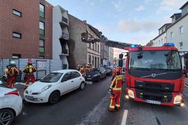 Die Feuerwehr Düren wurde am Sonntag, 4. Januar, um 15:50 Uhr durch die Leitstelle des Kreises Düren zu einem Zimmerbrand im ersten Obergeschoss eines Wohnhauses in der Nideggener Straße alarmiert. Nach ersten Meldungen sollten sich noch Personen im Gebäude befinden. Aus diesem Grund wurden neben umfangreichen Einsatzkräften der Feuerwehr auch der Rettungsdienst alarmiert. Beim Eintreffen der ersten Einsatzkräfte bestätigte sich ein Feuer auf dem außenliegenden Balkon, was drohte sich auf ein Zimmer auszudehnen. Unverzüglich wurde die Drehleiter in Stellung gebracht und ein Löschangriff von außen eingeleitet. Parallel ging ein Trupp unter Atemschutz zur Menschenrettung und Brandbekämpfung über den bereits verrauchten Treppenraum zur Brandwohnung vor. Die Rauchausbreitung wurde durch eine Rauchschutzvorhang verhindert und eine maschinelle Belüftung des Treppenraums eingeleitet. Die unverzüglich eingeleiteten Löschmaßnahmen zeigten schnell Erfolg und die Kontrolle der Wohnung auf vermisste Personen brachte zum Glück das Ergebnis, das keine Personen angetroffen werden konnten. Einsatzkräfte der Feuerwehr unterstützten bei der Rettung von Bewohnern aus dem Gebäude und übergaben diese zur Sichtung an den Rettungsdienst. Insgesamt wurden sechs Personen durch den Rettungsdienst sowie den vor Ort eingesetzten Notarzt untersucht. Verletzungen wurden nicht festgestellt, sodass kein Transport erfolgte. Eine zunächst vermisste Katze wurde durch die Feuerwehr gerettet und dem Eigentümer übergeben. Nach Abschluss der Löscharbeiten führte die Feuerwehr umfangreiche Lüftungsmaßnahmen durch. Während des Einsatzes musste die Nideggener Straße durch die Polizei vollständig für den Verkehr gesperrt werden. Die Feuerwehr Düren war mit rund 75 Einsatzkräften im Einsatz. Beteiligt waren die Hauptwache, der Löschzug Mitte, die Löschgruppen Birkesdorf, Niederau, Lendersdorf und Berzbuir, die Führungsunterstützung sowie ein Rettungswagen und ein Notarzt. Der Einsatz dauerte insgesamt etwa anderthalb Stunden.