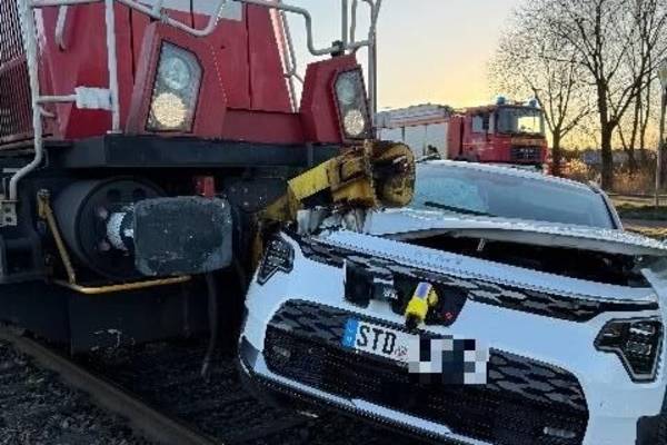 Am heutigen Dienstag, den 30.12.2025 gegen 14:57 Uhr wurde der Polizei und der Feuerwehr ein Zusammenstoß zwischen einem Güterzug und einem PKW auf dem Bahnübergang der Bützflether Industriestraße gemeldet.