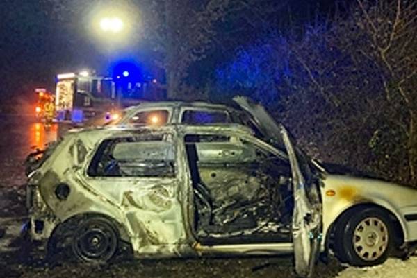 Gegen 0:50 Uhr wurden Feuerwehr und Polizei an die Bleer Straße gerufen, weil auf einem Parkplatz an der dortigen Stichstraße "Am alten Leinpfad" zwei Autos gebrannt hatten. Als die Polizei vor Ort eintraf, war die Feuerwehr der Stadt Monheim am Rhein schon mit den Löscharbeiten zugange. Es konnte jedoch nicht mehr verhindert werden, dass die beiden dort abgestellten Fahrzeuge - ein Citroen und ein VW - vollständig ausbrannten.