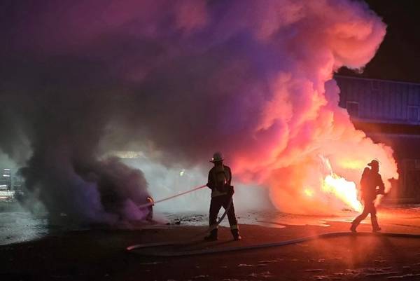 Bei Eintreffen der Einsatzkräfte bestätigte sich die Meldung. Zwei Fahrzeuge mit Verbrennungsmotor brannten im Bereich des Motors in Vollbrand. Die Gefahr einer Ausbreitung auf weitere Fahrzeuge bestand nicht. Im Rahmen der Brandbekämpfung kamen zwei C-Rohre zum Einsatz. Zur Brandursache kann die Feuerwehr keine Angaben machen.