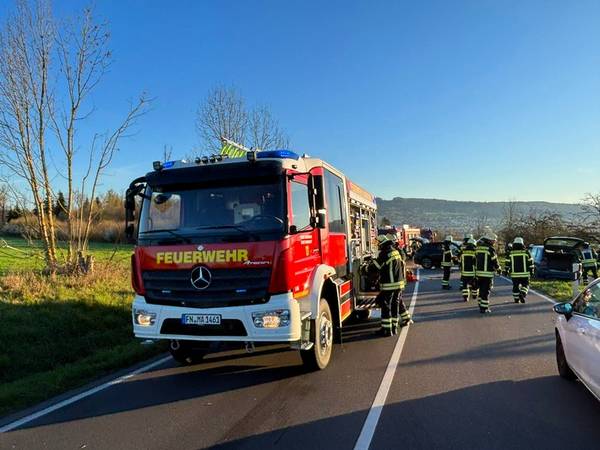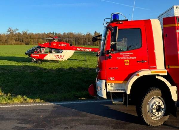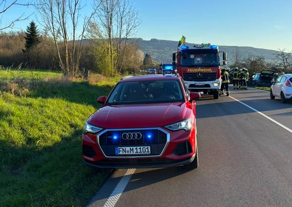 Am Mittwochmorgen (8. April 2026) kam es auf der Bundestraße 33 zwischen Markdorf und Wirrensegel kurz vor 7 Uhr zu einem schweren Verkehrsunfall, bei dem nach einer Frontalkollision zweier PKW beide Fahrer verletzt worden sind. Die Freiwillige Feuerwehr Markdorf rückte zur Unfallrettung aus und befreite den eingeklemmten Fahrer eines Renault Megane mit hydraulischem Rettungsgerät aus seinem Fahrzeug. Beide Fahrzeuglenker, die sich allein in den Fahrzeugen befunden hatten, wurden vom Rettungsdienst versorgt und in umliegende Krankenhäuser transportiert. Der Notarzt war mit dem Rettungshubschrauber Christoph 45 zur Einsatzstelle geflogen worden. Während der Einsatzmaßnahmen und der anschließenden Unfallaufnahme durch die Polizei war die Bundestraße in diesem Bereich für 2,5 Stunden voll gesperrt. Die Aufgaben der Feuerwehr, neben der Unfallrettung, waren das Absichern der Unfallstelle, das Sicherstellen des Brandschutzes, die Unterstützung des Rettungsdienstes und später das Säubern der Straße von Betriebsstoffen. Zur Schwere der Verletzungen, zum genauen Unfallhergang und zur Schadenshöhe hat die Feuerwehr keine Kenntnisse und verweist hier auf die Pressestelle des Polizeipräsidiums. Der stellvertretende Kreisbrandmeister Felix Engesser machte sich ein Bild der Rettungsmaßnahmen vor Ort. Die Feuerwehr war zweitweise mit 6 Fahrzeugen und 25 Feuerwehrleuten im Einsatz.