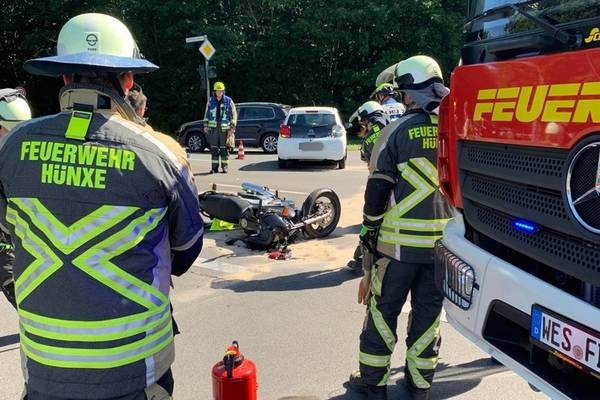 Vier Verletzte nach Verkehrsunfall zwischen zwei Pkw und einem Motorrad