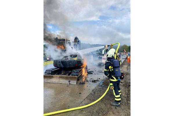 Feuerwehr eskortiert rauchenden Müllwagen durchs Stadtgebiet