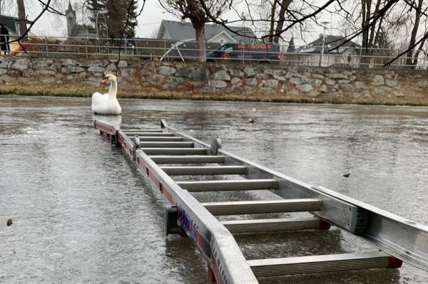 Einsatzkräfte der Tierhilfe retten in der Aist festgefrorenen Schwan