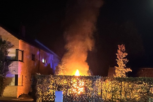 Brennende Hecke - Gebäude in Gefahr
